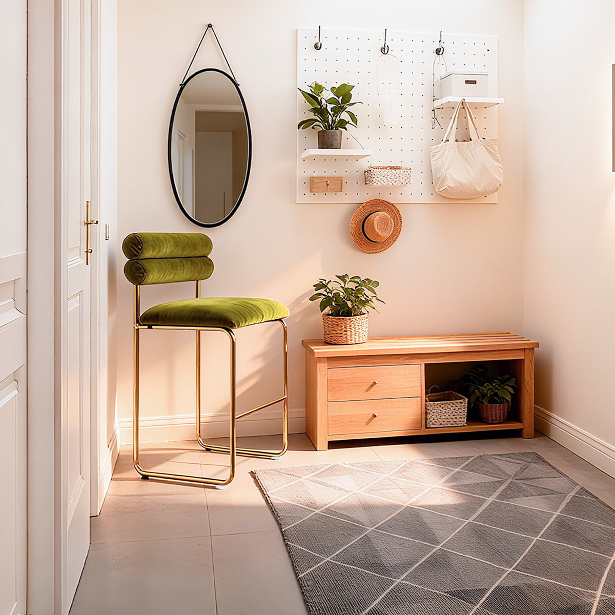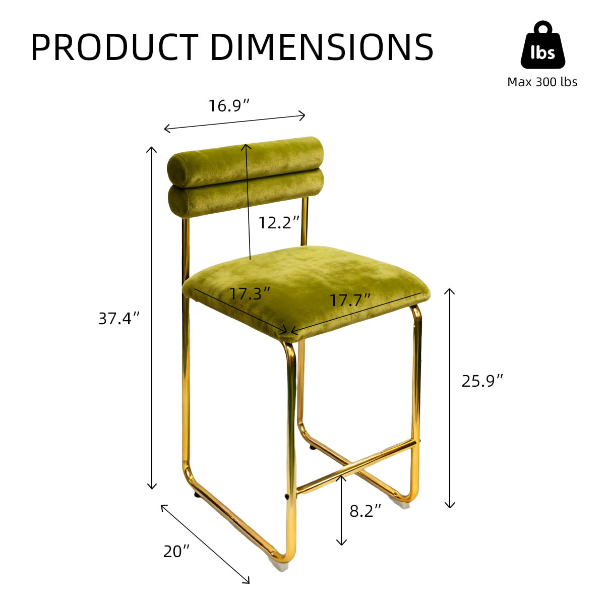 Sen 37,4 tuuman korkeus sopii tavallisiin keittiötasoihin ja ruokailubaareihin, kun taas 25,9 tuuman istuin varmistaa optimaalisen mukavuuden pitkiin keskusteluihin tai rennon ruokailuun. Pehmeä samettiverhoilu tarjoaa ylellisen kosketuskokemuksen, ja kullatut jalat lisäävät hienostuneisuutta. Tämä jakkara on erittäin kimmoisan vaahtomuovityynyn ja liukastumattoman pohjan ansiosta suunniteltu yhdistämään mukavuus, tyyli ja kestävyys – täydellinen sekä koti- että liiketiloihin.