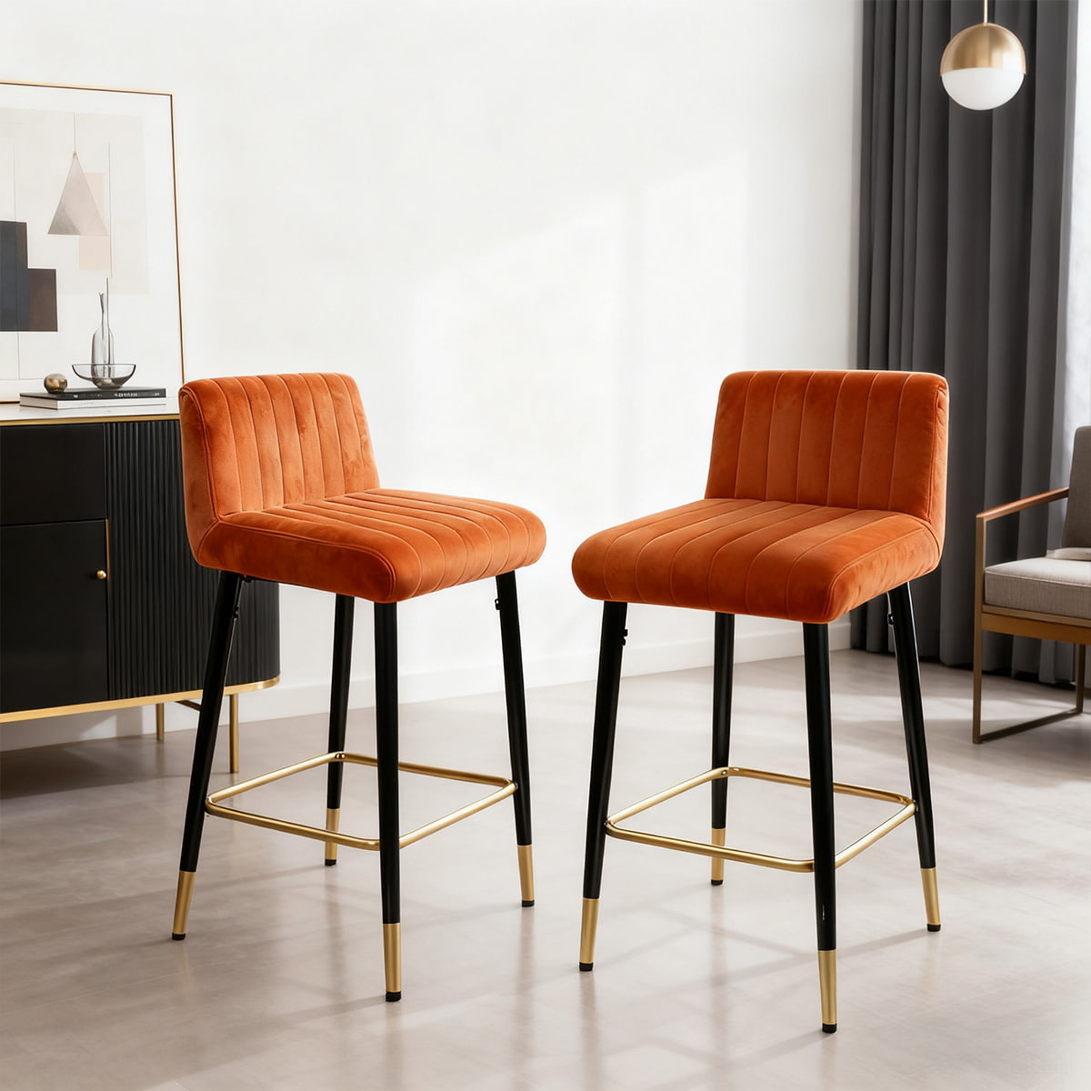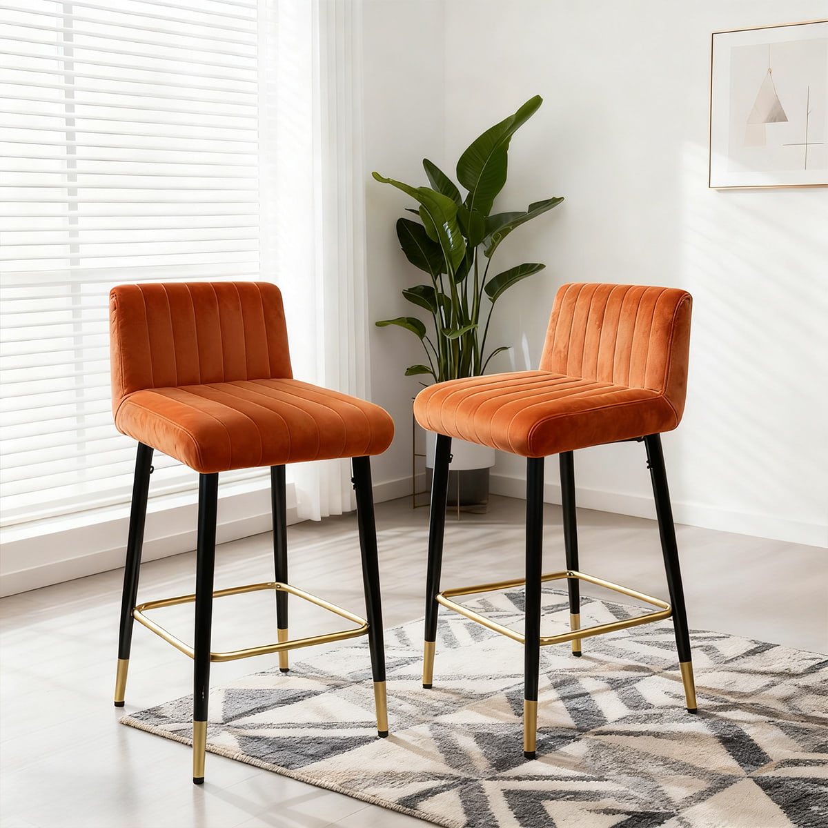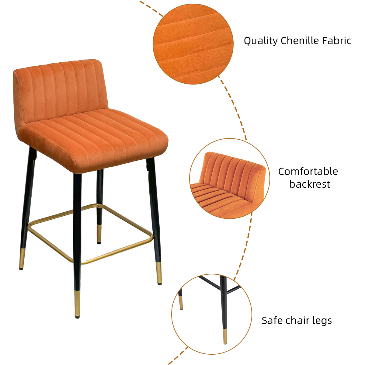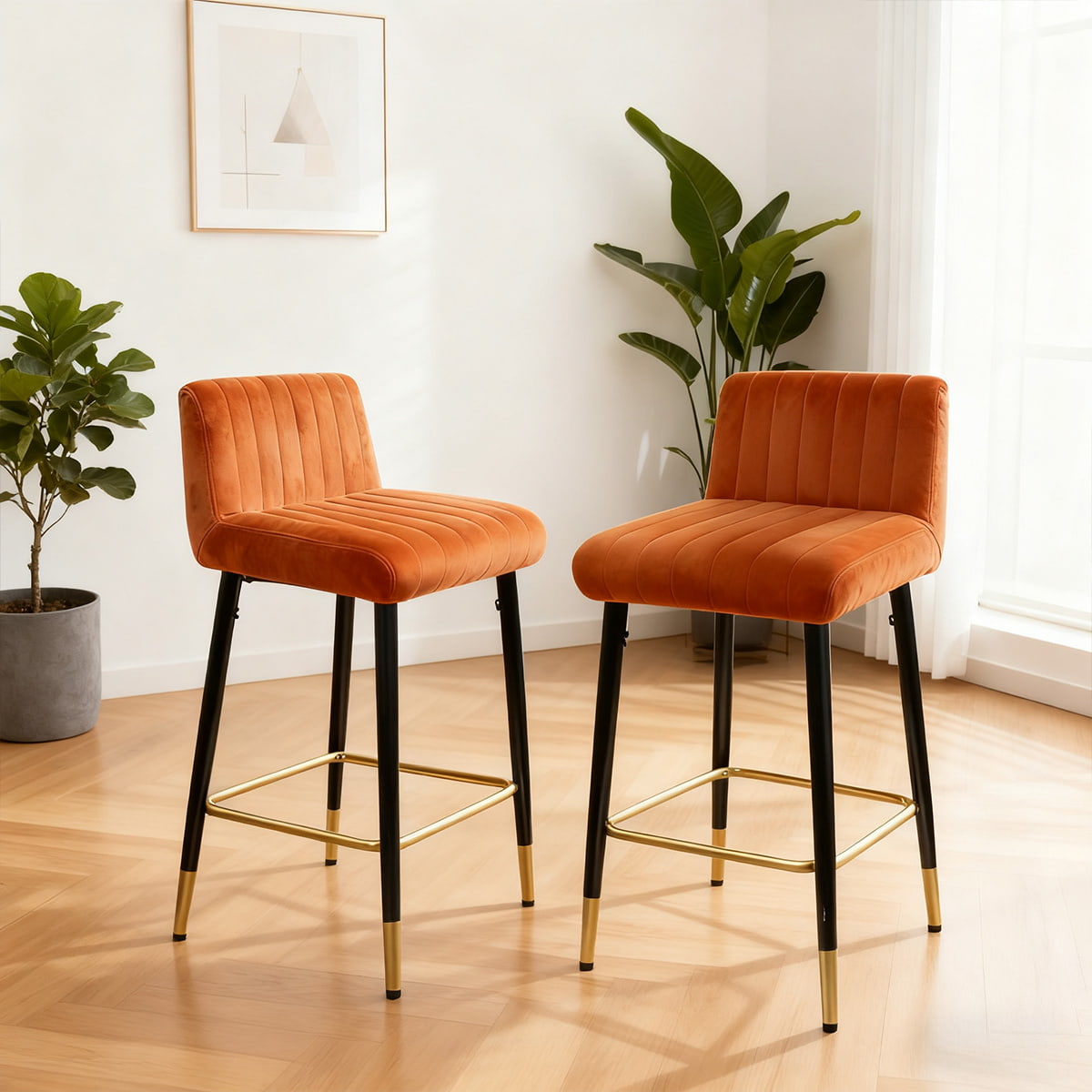 oppia lisääLisää ripaus nykyaikaista charmia kotiisi DUOMEI Ocher Orange Velvet -pyörivä baarituoli. Tämä jakkara on suunniteltu sekä tyyliä että mukavuutta silmällä pitäen, ja siinä on muhkea samettiverhoilu pystysuoralla kanavaompeleella, joka tarjoaa kutsuvan istuimen mihin tahansa tilaan. 360° kääntyvä toiminto varmistaa joustavuuden, kun taas musta metallirunko kullanvärisillä yksityiskohdilla tarjoaa tukevan pohjan ja ylellisen viimeistelyn.