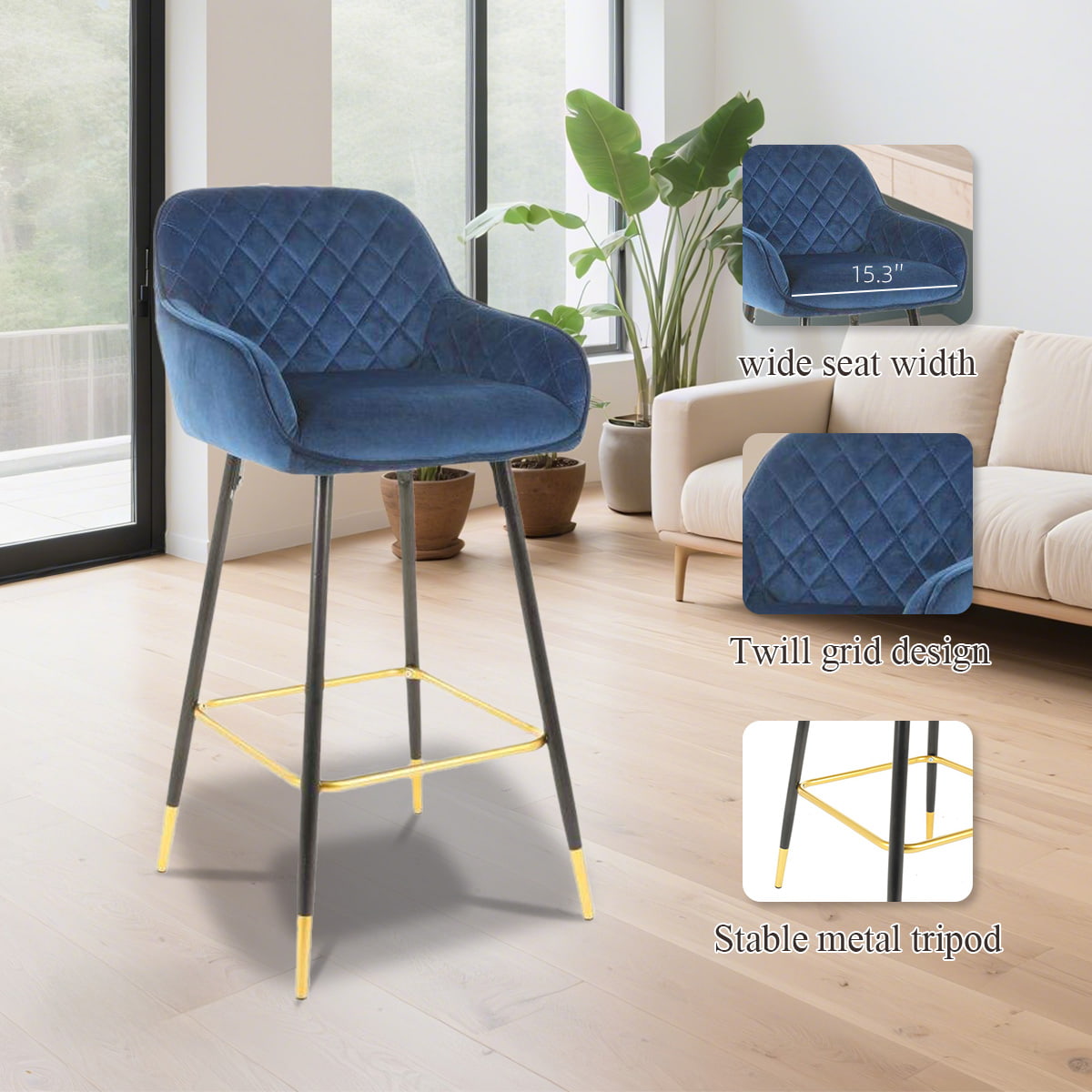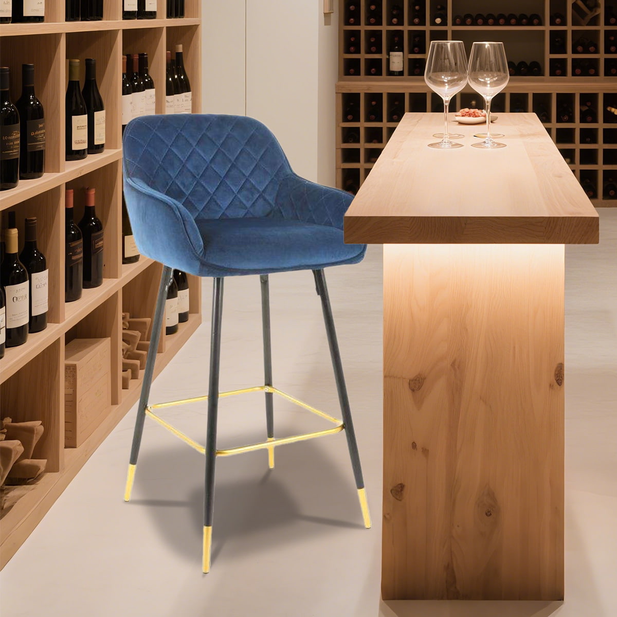 Kuninkaallinen sininen samettiset jakkara metallaloteilla olohuoneeseen