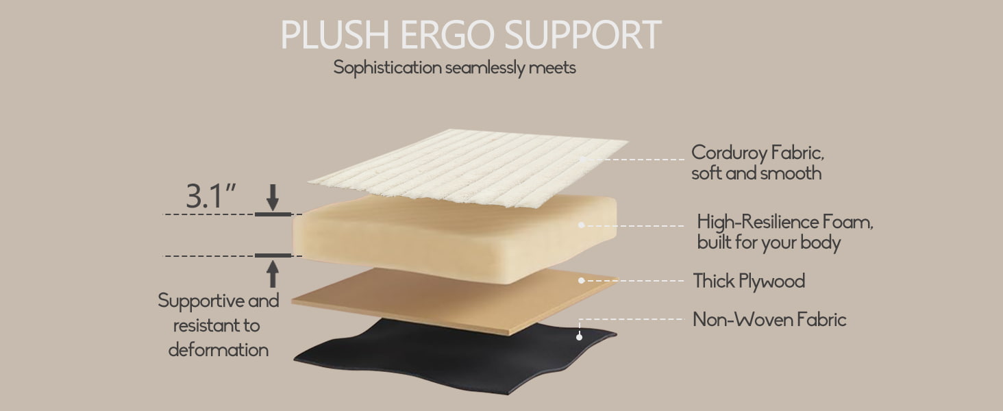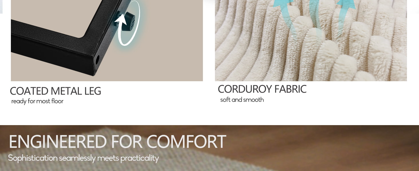 ● Pehmoinen vakosamettiverhoilu: Pehmeä vakosamettikangas tarjoaa lämpimän, kuvioituneen tunteen, mutta pysyy samalla kestävänä ja helppohoitoisena.