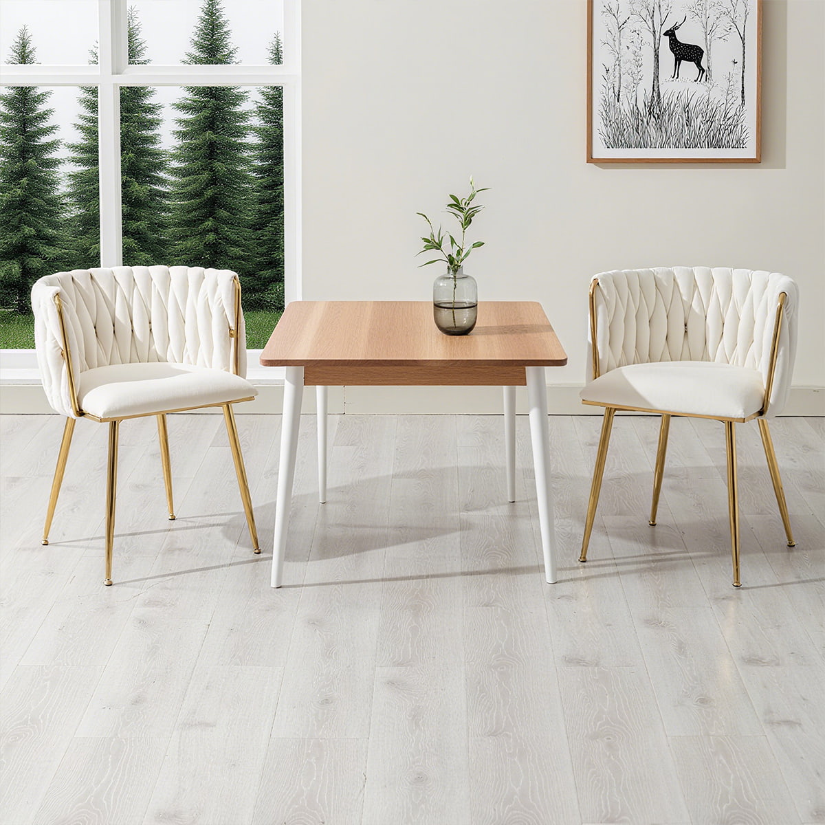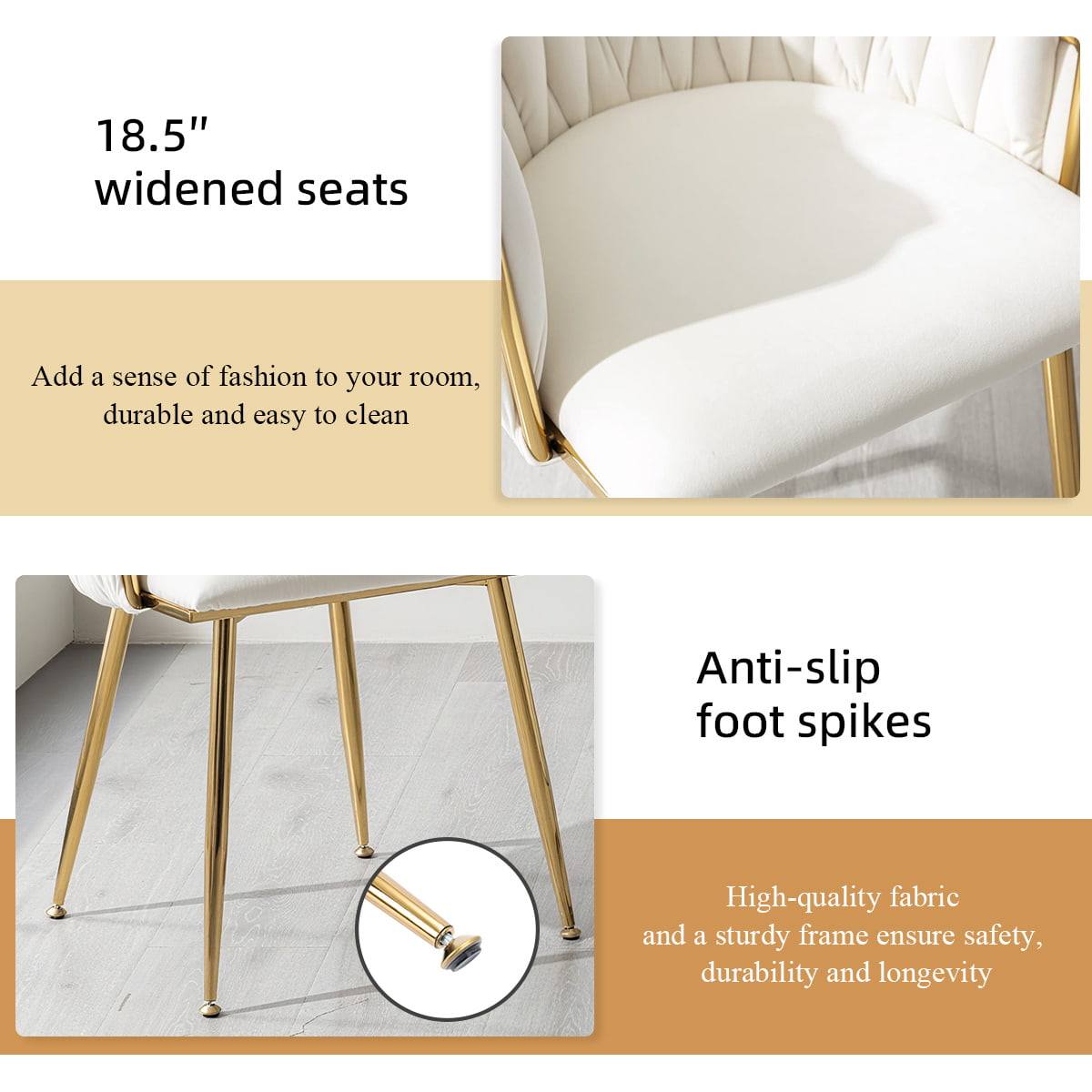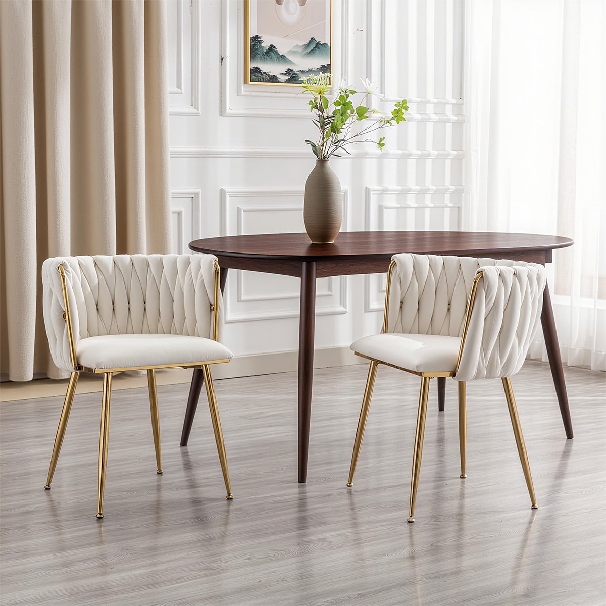 Ivory Velvet -pehmustettu ruokailutuoli – moderni kudottu selkätuoli kultaisilla metallijaloilla, vuosisadan puolivälissä oleva sivutuoli ruokasaliin, olohuoneeseen, keittiöön tai turhamaisuuteen