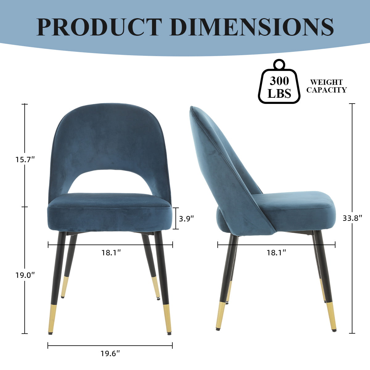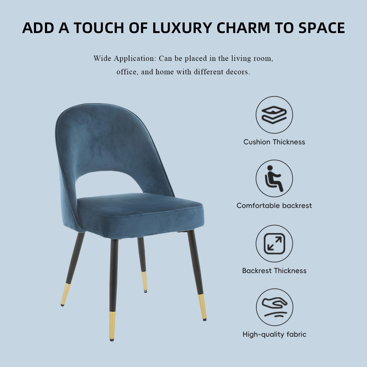Moderni sininen samettiruokatuoli, ontolla selkänojalla ja kultakierroksella metallisella jaloilla-Armless Verhoitettu aksenttituoli ruokasalissa, toimistossa tai turhamaisuudessa