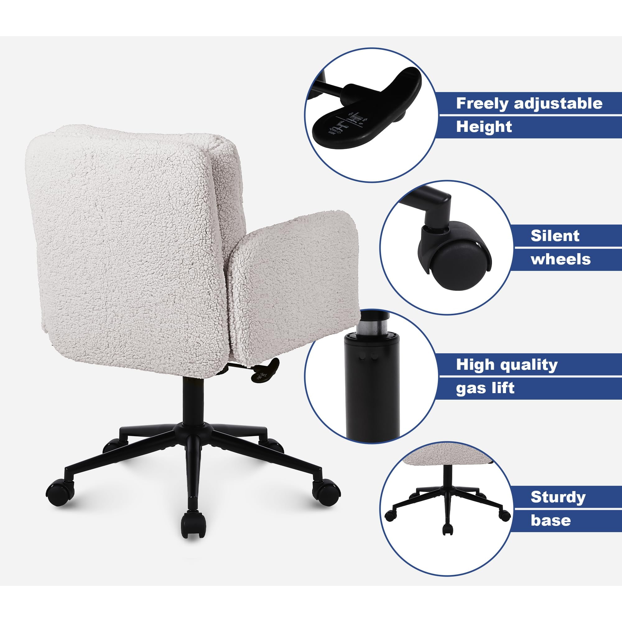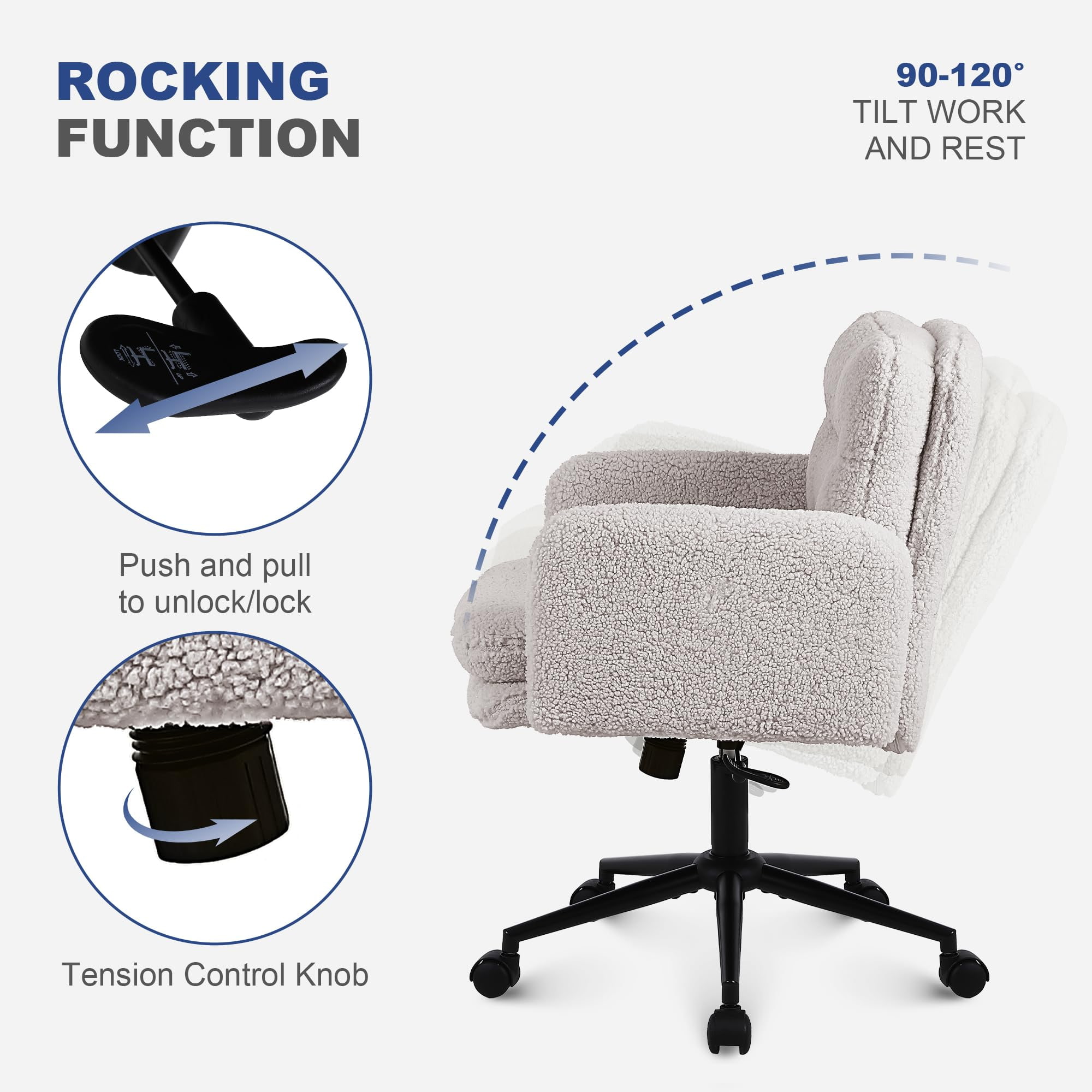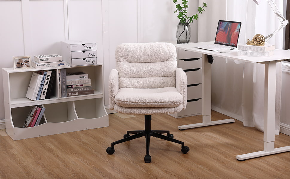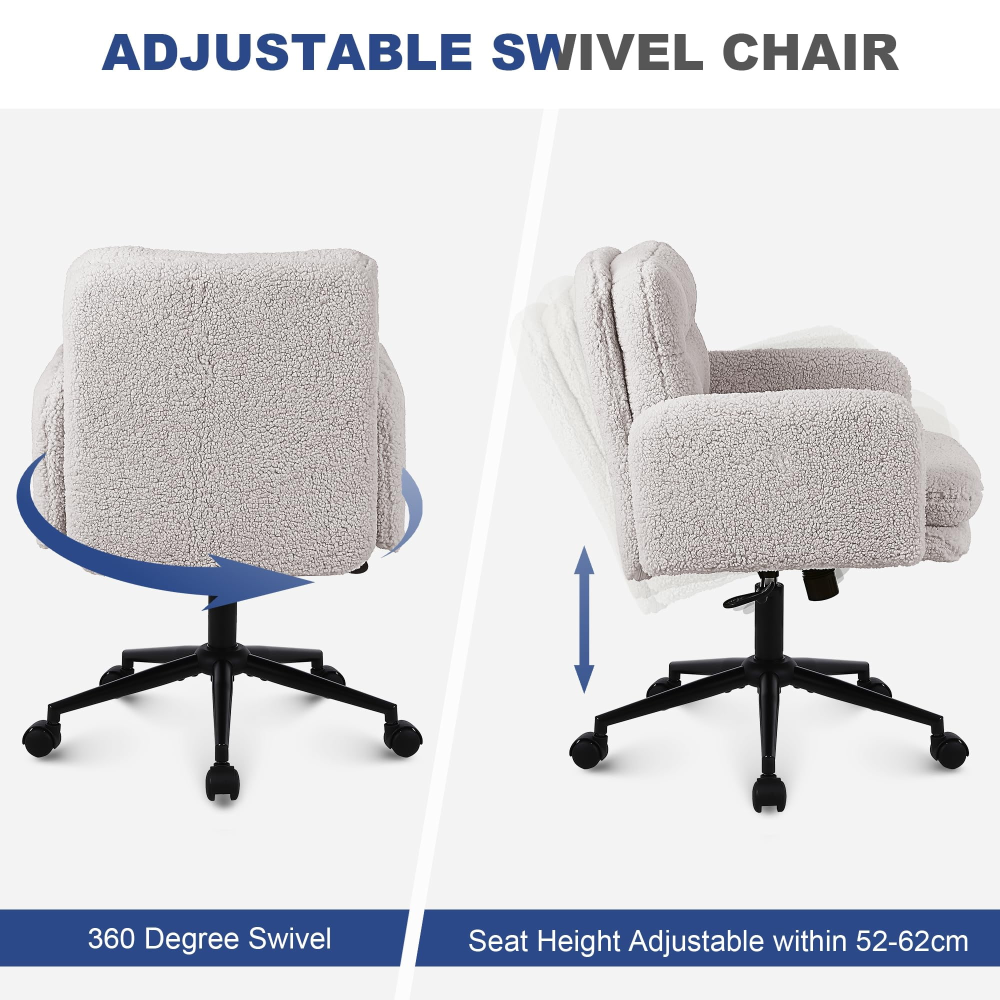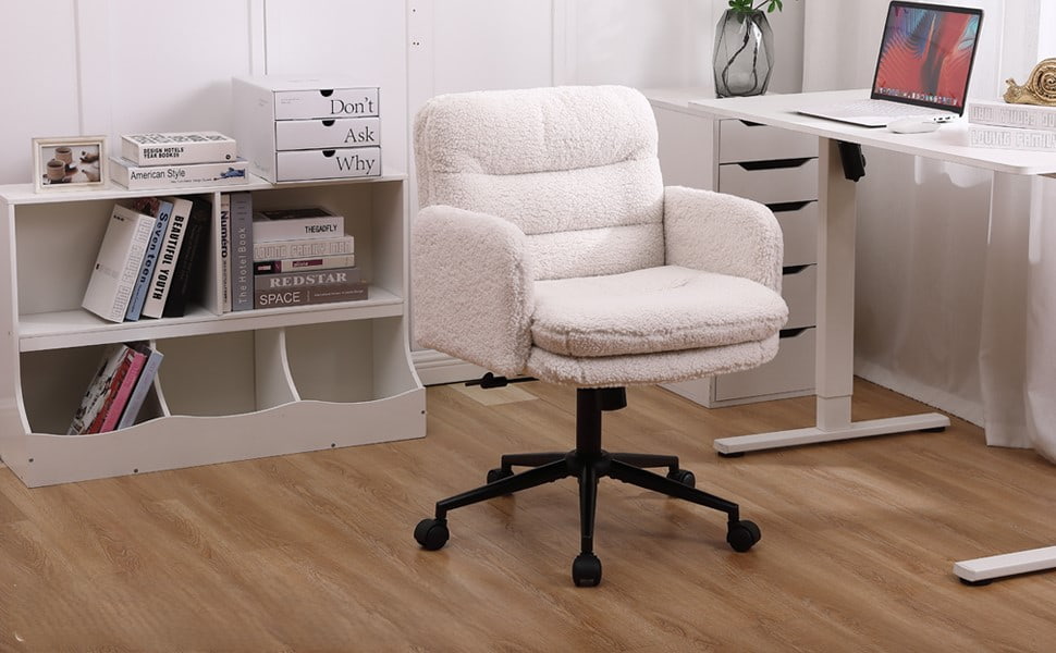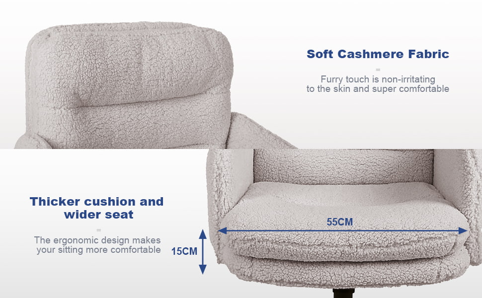 Faux Cashmere säädettävä työtuoli kääntyvällä ja keinuvalla toiminnolla – Pehmeä pehmustettu pöytätuoli koti- ja turhamaiseen käyttöön