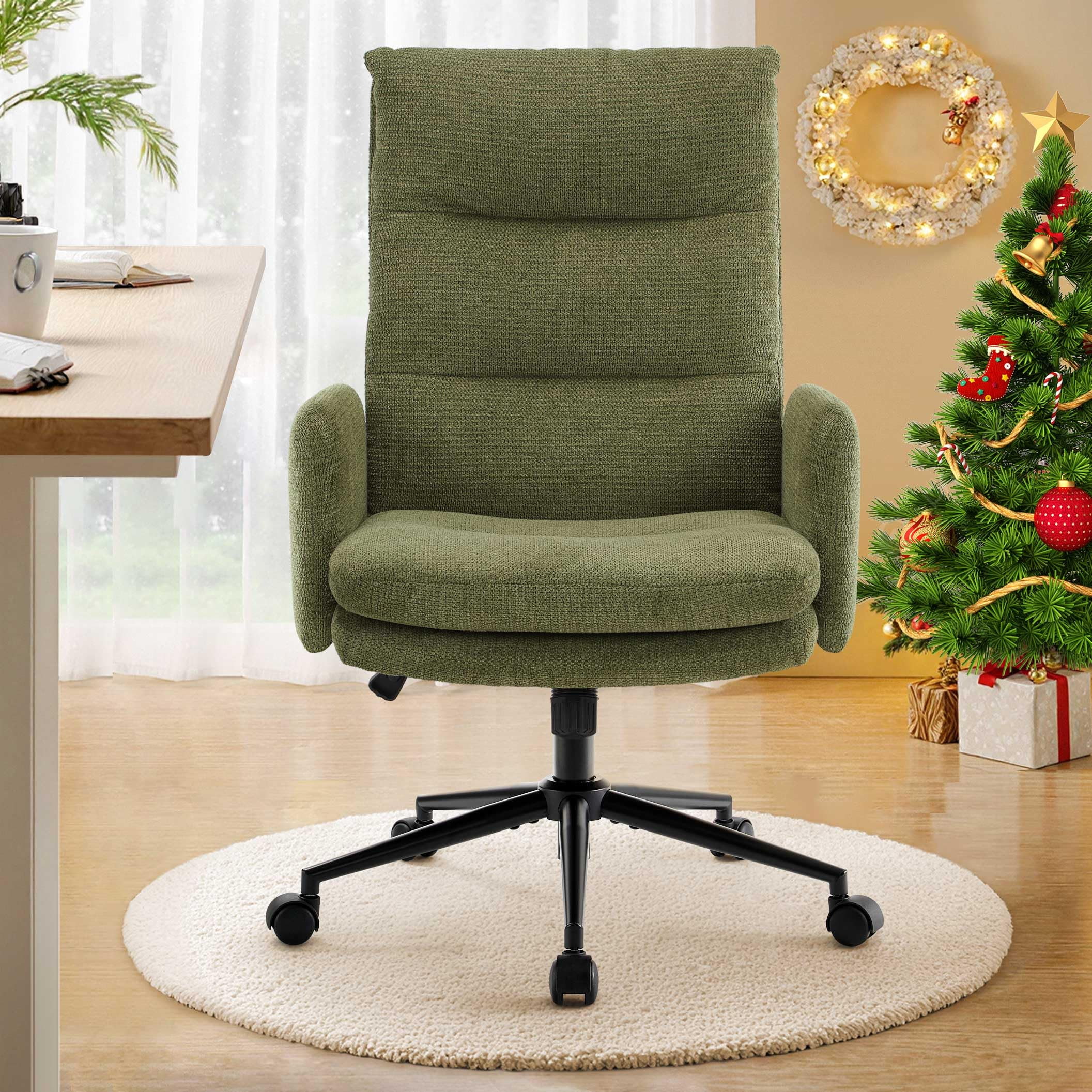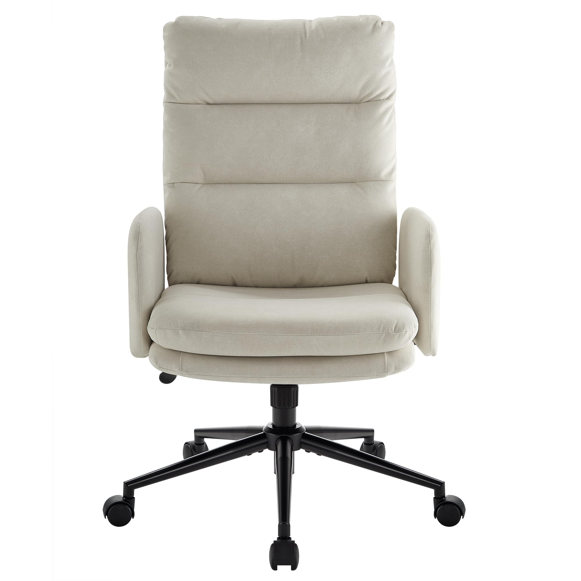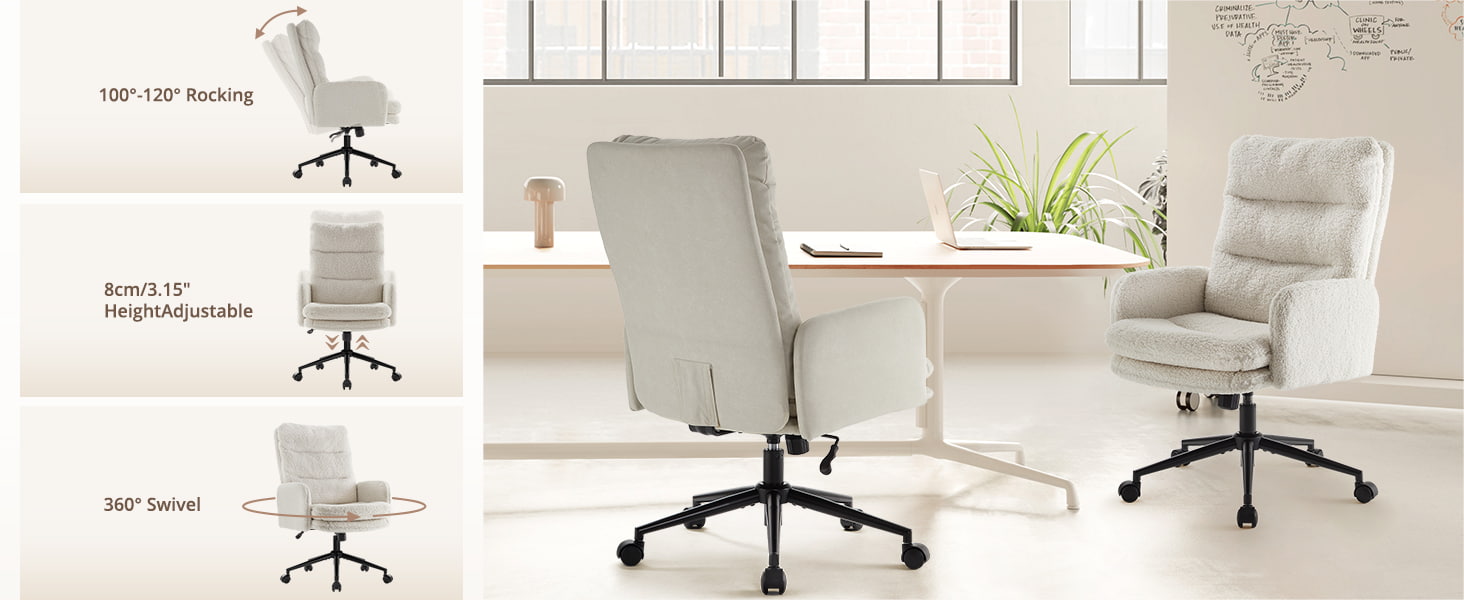 Tämä korkeaselkäinen kashmir-työtuoli on suunniteltu ostajille, jotka arvostavat ensiluokkaista mukavuutta, modernia estetiikkaa ja ergonomista tukea. Kaksikerroksinen pehmustettu istuin, jossa on figuuripuuvillaa ja tiheää sientä, tuoli tarjoaa pilvenomaista pehmeyttä säilyttäen samalla vakaan tuen pitkien istuntojen aikana. Pehmeä keinokashmirkangas tarjoaa lämpimän, ihoystävällisen kosketuksen, joten se sopii täydellisesti kotitoimistoihin, makuuhuoneisiin, turhamaisuuteen ja nykyaikaisiin työtiloihin. Sen 360° kääntyvä alusta, SGS-sertifioitu nostin, äänettömät pyörät ja 100°–120° keinumistoiminto tekevät siitä sopivan tuottavuuteen, rentoutumiseen ja päivittäiseen käyttöön.